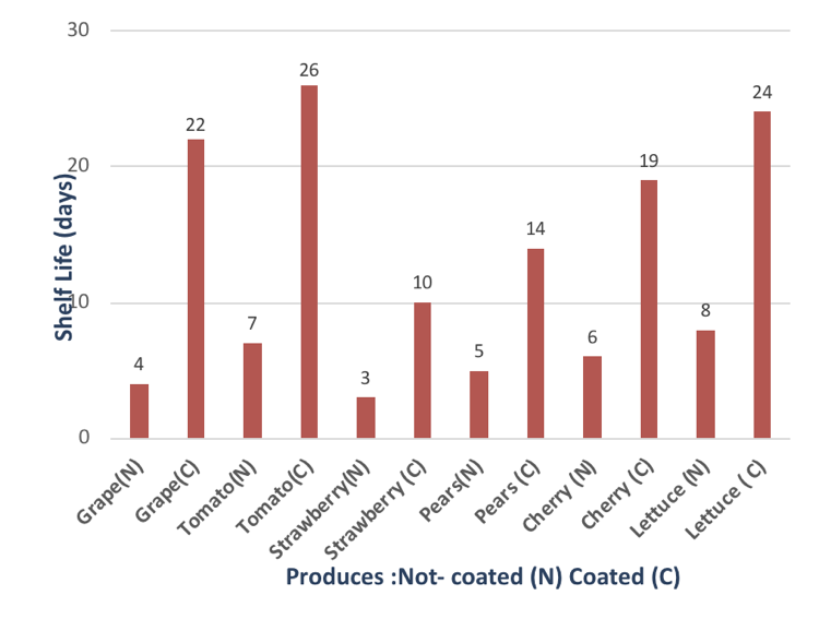 In previous work Texas State University team members discovered a self-assembling nanocomposite formed between polyvinylpyrrolidone and montmorillonite clay that exhibits high gas barrier properties. This self assembling phenomena has been extended to other polymers including polyvinyl alcohol, polyethylene oxide, and gum Arabic. It has additionally been demonstrated that coating fruits and vegetables with this self-assembling system extends the shelf life three fold ( figure 1). It appears that the shelf life extension is due to two factors. First the coating slows the egress of water and secondly the ingress of oxygen is drastically reduced. A patent has been applied for on this technology.